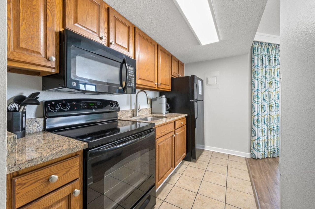 This unit boasts a comfortable king bed and a sleeper loveseat, providing room for you and your loved ones. With a fully equipped kitchenette, you can easily whip up a quick meal or enjoy your morning coffee on the balcony while taking in the sights of the beach.