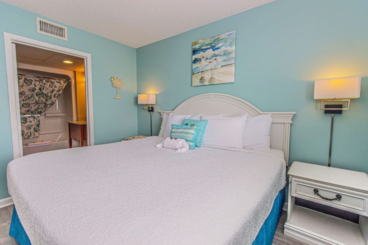 Situated on the 7th floor of the Camelot by the Sea Resort, this condo offers stunning ocean views from its large balcony. This professionally updated unit features LVP flooring throughout, along with custom countertops in your well stocked kitchen(perfect for cooking meals). Our guests enjoy all the resort-amenities including indoor and outdoor pools, a lazy river, hot tubs, and a fitness center. The attached parking garage allows you to easily drive up to the 7th floor for loading and unloading! The prime Myrtle Beach location also puts you just steps away from the beach, as well as popular shopping, dining, and entertainment destinations. Book now and experience the ultimate beach vacation!