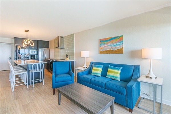 Located in the historic Ocean Forest corridor along Myrtle Beach’s oceanfront—where the iconic Ocean Forest Hotel opened, nearly a hundred years ago—our oceanfront beach condo has undergone new designer updates, including a modern kitchen and luxurious master bath. This 2BR/2BA retreat sleeps 6 and offers sun-filled spaces, unobstructed ocean views from the deck, and easy beach access. Just steps from the shore and a short drive to Myrtle Beach’s most popular attractions, you’ll enjoy this coastal comfort with modern style. After a day in the sun, unwind in the redesigned master suite and its luxurious ensuite bath. The ocean view sundeck, outdoor pools, hot tubs, and a grill area are available for your stay. This is a 3rd floor unit, accessible using breezeways and stairs to reach the unit. This complex does not offer elevators. Ample parking near the unit allows for quicker access.