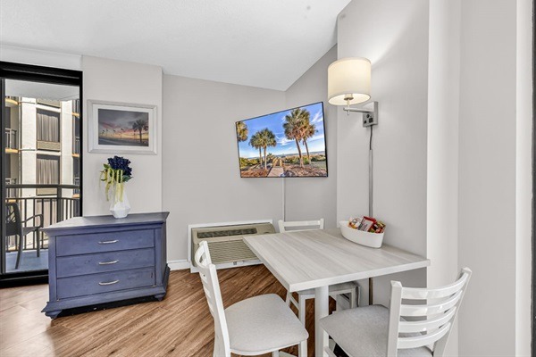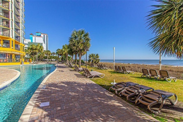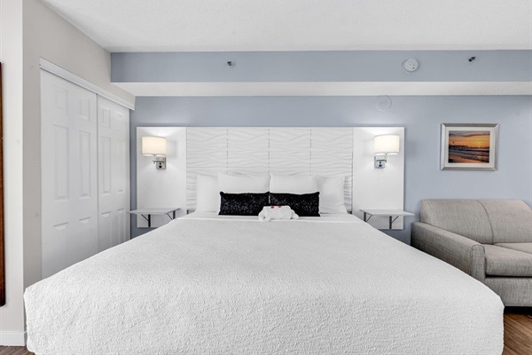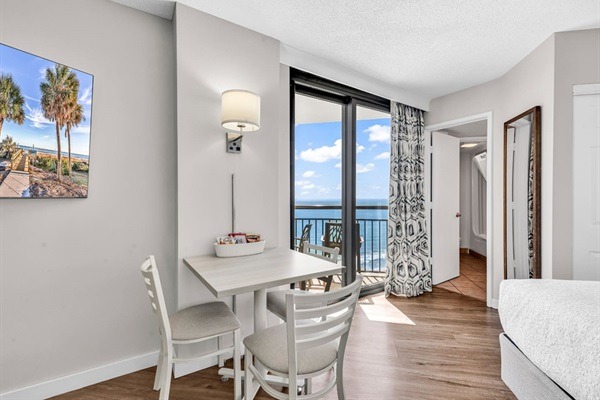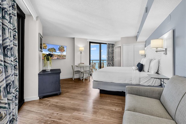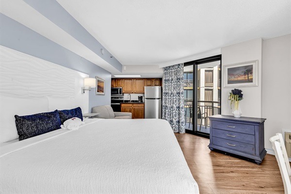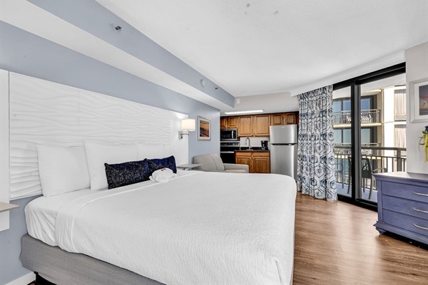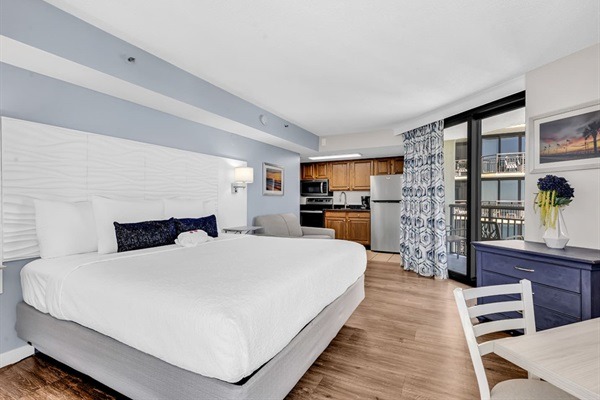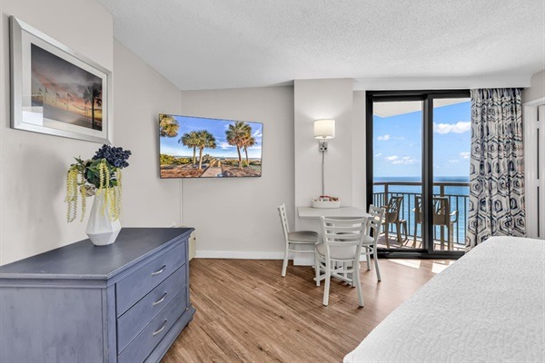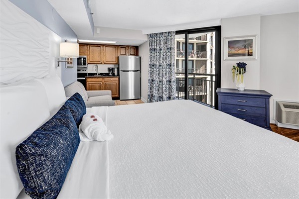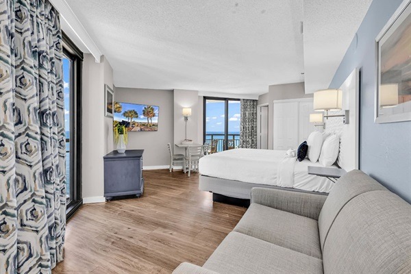 This newly updated studio unit is located on the 16th floor of the Patricia Grand Resort and new king bed with loveseat sleeper! Not one, but TWO oceanfront balconies to enjoy the amazing views. Go straight to your room with your own unique door code and start enjoying your stay! This unit welcomes respectful owners and their small pets also. Resort has 20 lb maximum for guest's dogs, with a 2 dog maximum per room.