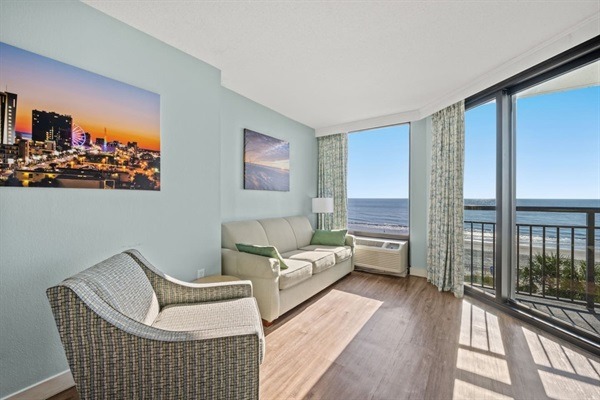 Experience the best of Myrtle Beach in this newly renovated 1 bedroom, 1 bathroom condo located at The Patricia Grand Resort. This prime oceanfront location offers stunning views of the sparkling Atlantic Ocean from the comfort of your own private balcony. The unit has been recently updated with modern furnishings and amenities, making it the perfect retreat for your next vacation. Enjoy all the comforts of home including a fully equipped kitchen, comfortable king-sized bed, and a cozy living area. And the best part? We are dog friendly, so your four-legged friend can join in on the fun too! The resort itself offers top-notch amenities such as indoor and outdoor pools, hot tubs, a lazy river, and direct beach access. Plus, with a keypad for 24-hour contactless entry, you can relax and enjoy your vacation without worrying about keys or check-in times. Don't miss out on the opportunity to stay in this amazing condo at The Patricia Grand Resort. Book now for your dream Myrtle Beach vacation!